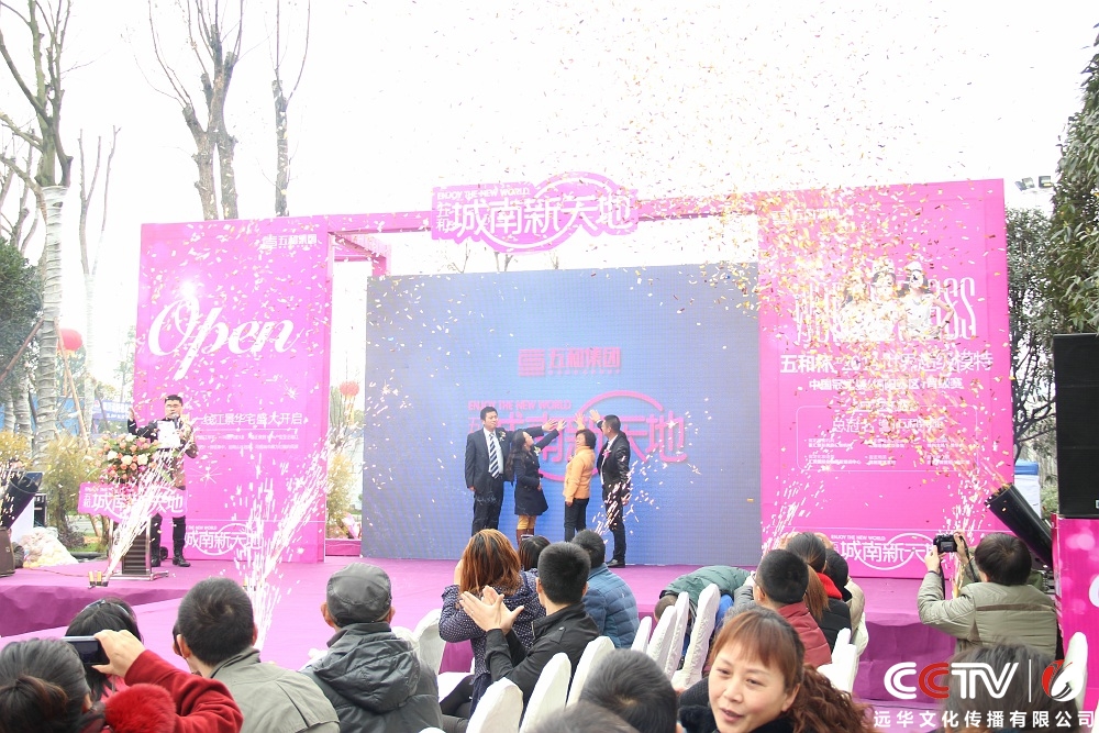 2014年3月15日,綿陽五和城南新天地盛大開盤,五和城南新天地由綿陽五和城南房地產開發有限公司投資建設,項目座落經開區一號橋右側,占地178畝,其中100余畝修建以浪漫愛情為主的公園綜合體,建筑修建僅占76畝,建筑面積為17.23萬㎡,項目綜合容積率為0.23;住宅容積率僅為1.09,其商業建筑面積為7.24萬㎡。遠華應邀成為此次開盤儀式的全程策劃和執行,用現場說話、完美的品質、精準的細節取得了活動的圓滿成功。
